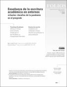Item type: Ítem , Access status: Acceso Abierto , La enseñanza de la escritura académica y profesional en carreras universitarias de ingeniería. Perspectiva docente y estudiantil(Editorial Facultad de Educación. UNCuyo. Mendoza, 2024-06-30) Rosso, Florencia; Alegra, Nara; Nadal, Macarena; Pozzo, María Isabel; Ortega de Hočevar, Susana; 0000-0002-9183-1541La escritura en carreras universitarias de ingeniería puede ser una herramienta de aprendizaje, así como una forma de participar en una comunidad discursiva, siempre que se perciba su potencial epistémico y se enseñe en las aulas universitarias. A partir de este supuesto, este artículo se propone: relevar percepciones estudiantiles y docentes de ingeniería sobre la escritura y su enseñanza en esta rama de conocimiento y sistematizar estrategias que favorezcan la escritura desde la perspectiva docente. Para alcanzarlos llevamos a cabo un estudio de caso instrumental en carreras de ingeniería mecánica y electrónica en una universidad pública argentina a partir de encuestas a estudiantes y docentes, complementadas con entrevistas a informantes clave en estas carreras. Los resultados indican que, desde la perspectiva de docentes y la mayoría de estudiantes, la escritura académica aporta a la formación en este campo de conocimiento, fundamentalmente en el futuro desarrollo profesional, aunque este campo de conocimiento ayuda poco en su promoción. Con respecto al segundo objetivo, las prácticas de enseñanza que favorecen este tipo de producción —según los docentes—son aquellas que promueven el razonamiento matemático, y se integran en tareas auténticas de esta disciplina. Concluimos que, pese a su relevancia en la ingeniería, la enseñanza de la escritura no se desarrolla íntegramente en los límites de las asignaturas de las carreras tomadas como caso. Y ello a pesar de que enseñar a escribir a través del currículum potencia esas prácticas, sea a partir de la reflexión sobre un concepto o el conocimiento de un contenido junto con sus formas escriturales prototípicas.Item type: Ítem , Access status: Acceso Abierto , Enseñanza de la escritura académica en entornos virtuales: desafíos de la pandemia en el posgrado(Universidad pedagógica Nacional, Bogotá, 2023-07-03) Pozzo, María Isabel; Rosso, FlorenciaItem type: Ítem , Access status: Acceso Abierto , Repensar el trabajo docente en torno a la escritura en la formación de ingenieros.(Universidad Nacional de Mar del Plata., 2021-01-01) Nadal, Macarena; Alegre, Nara; Rosso, Florencia; Pozzo, María IsabelItem type: Ítem , Access status: Acceso Abierto , Un modelo pedagógico para la educación a distancia de enseñantes de español como lengua extranjera(Universidad del Salvador, 2009) Dobboletta, Analía; Pozzo, María IsabelItem type: Ítem , Access status: Acceso Abierto , La enseñanza de lenguas extranjeras en Argentina(LACUA. Latin American Center University of Aarhus—Denmark, 2009-06-01) Pozzo, María IsabelItem type: Ítem , Access status: Acceso Abierto , La práctica docente universitaria en Educación a distancia. Procesos metacognitivos y buena enseñanza, Susana Copertari. Reseña bibliográfica(Universidad Nacional de Córdoba. Centro de Estudios Avanzados., 2010-12-10) Pozzo, María IsabelItem type: Ítem , Access status: Acceso Abierto , Vigencia y sentido de las prácticas musicales tradicionales en la actualidad. El caso de la baguala y la vidalita andina en San Blas de Los Sauces, Provincia de La Rioja.(Universidad Católica Argentina. Facultad de Artes y Ciencias Musicales. Instituto de Investigación Musicológica Carlos Vega, 2011) Polo, María del Pilar; Pozzo, María IsabelItem type: Ítem , Access status: Acceso Abierto , La música popular tradicional en el curriculum escolar ¿Un aporte a la formación del "ser nacional" o a la educación para la democracia?(Universidad de la Rioja, 2011) Polo, María del Pilar; Pozzo, María IsabelItem type: Ítem , Access status: Acceso Abierto , El tratamiento de los contenidos socioculturales en manuales de ELE utilizados en Flandes, Bélgica(Consejería de Educación en Bélgica, Países Bajos y Luxemburgo, 2011-12) Bongaerts, Hanne; Pozzo, María IsabelItem type: Ítem , Access status: Acceso Abierto , La investigación como ámbito de inserción para los graduados de Ciencias de la Educación: realidades y perspectivas(Facultad de Humanidades y Artes de la Universidad Nacional de Rosario, 2012) Pozzo, María IsabelItem type: Ítem , Access status: Acceso Abierto , Prefacio. Diálogos Latinoamericanos(LACUA. Latin American Center University of Aarhus—Denmark, 2014-06) Fernández, Susana S; Pozzo, María IsabelItem type: Ítem , Access status: Acceso Abierto , Reflexiones teórico-metodológicas para la realización de un audiovisual educativo sobre América Latina(Consejo Europeo de Investigaciones Sociales de América Latina, 2014-12) Besso Pianetto, María Elena; Pozzo, María IsabelItem type: Ítem , Access status: Acceso Abierto , Reflexiones históricas para el diseño de un audiovisual educativo sobre América Latina–Siglo xx(Universidad Nacional del Litoral. Facultad de humanidades y Ciencias., 2016-12-03) Besso Pianetto, María Elena; Pozzo, María IsabelItem type: Ítem , Access status: Acceso Abierto , Uso de cuestionarios en investigaciones sobre universidad: análisis de experiencias desde una perspectiva situada(Universidad Nacional de La Plata. Facultad de Humanidades y Ciencias de la Educación., 2018-12-20) Borgobello, Ana; Pierella, María Paula; Pozzo, María IsabelItem type: Ítem , Access status: Acceso Abierto , Using questionnaires in research on universities: analysis of experiences from a situated perspective(Universidad de Barcelona. Instituto de Desarrollo Profesional. Instituto de Ciencias de la Educación (ICE), 2019-06-01) Borgobello, Ana; Pierella, María Paula; Pozzo, María IsabelItem type: Ítem , Access status: Acceso Abierto , Incidencia de la