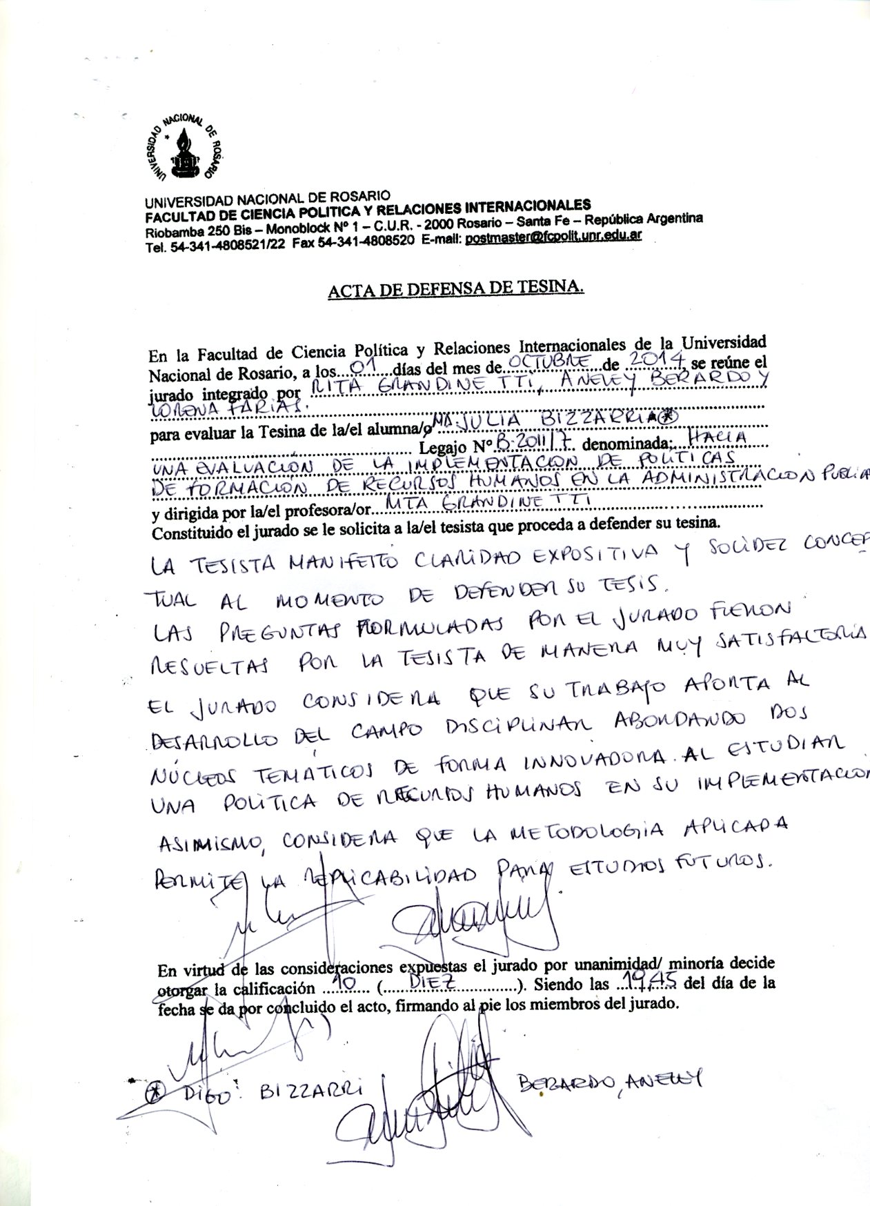 llevada adelante por la Provincia de Santa Fe durante el período 2010-2011 y observando