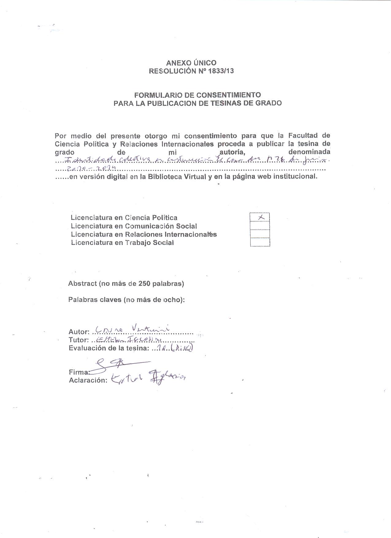configuraciones identitarias de los movimientos sociales, asumiendo que en los
