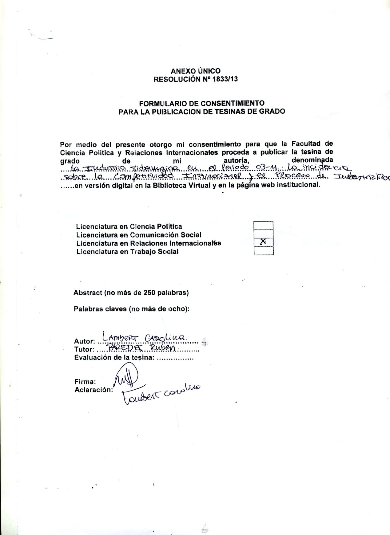 La industria siderúrgica argentina durante el período 2003-2011: análisis acerca de su incidencia sobre la competitividad internacional y el proceso de industrialización
