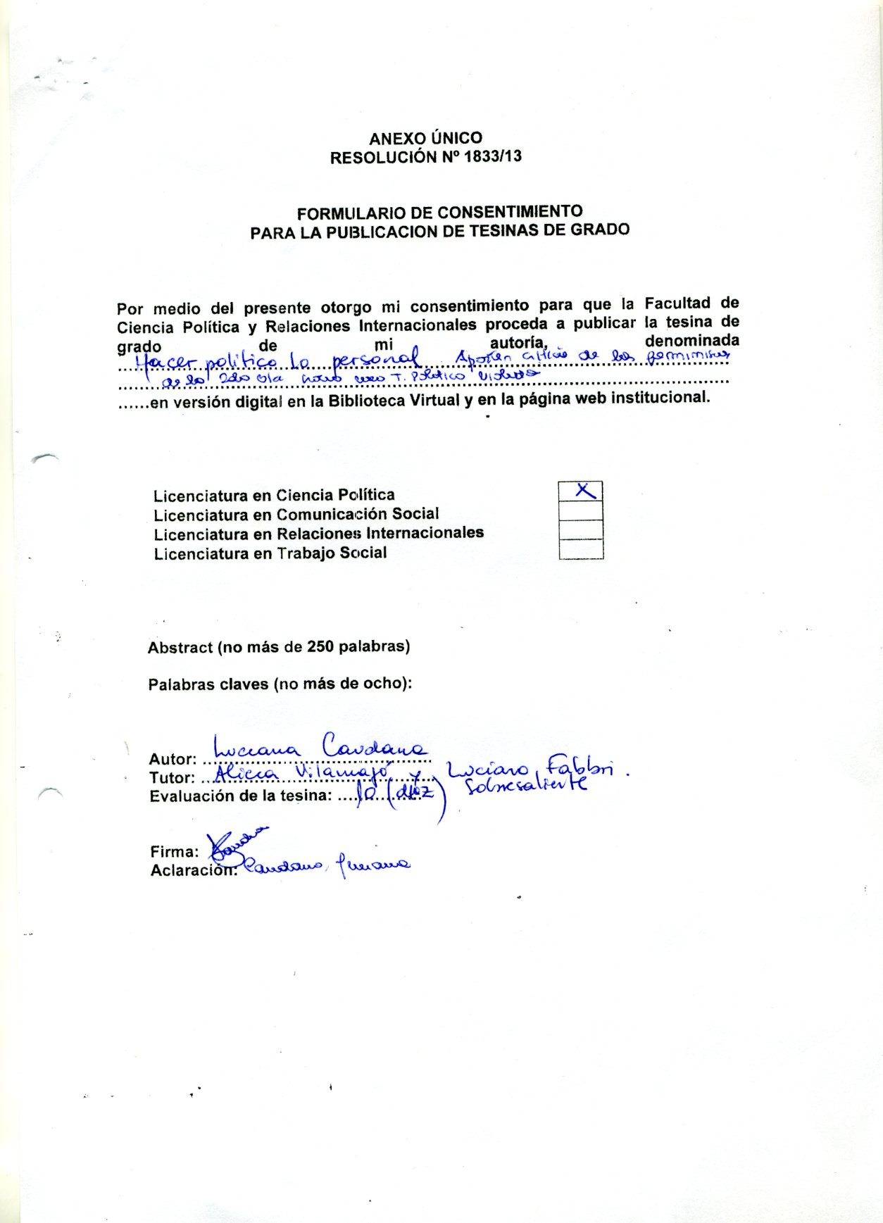 trabajo, de corte epistemológico y teórico-político respectivamente, en las cuales se