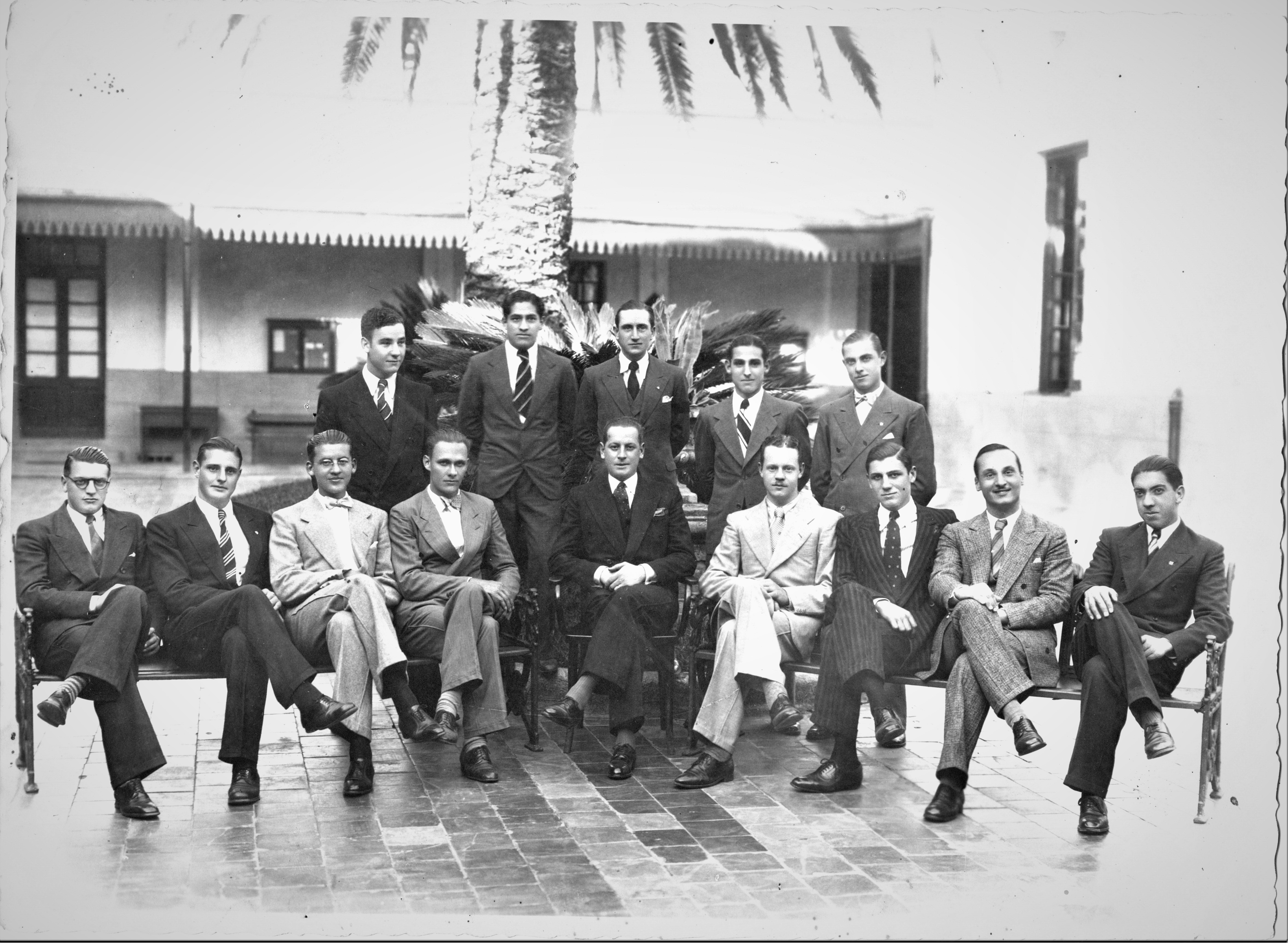 | dc.description | En el patio interno, los alumnos posan delante de una palmera rodeada por cycas; al fondo a la izquierda una de las puertas del Comedor, luego un transparente y por último asoma parte de la otra puerta; en la pared de la derecha, que corresponde al Dormitorio, se observa una ventana. En el reverso, escrito con lápiz: "Promoción del curso 1934 . De izquierda a derecha, sentados, Hector H. Mussolini, Rodolfo Massen, Jorge Engelbecht, Pablo Bransse, Director Ing Pablo B. Bascialli, Jorge Wheeler, Martin C. Illia, Raúl Carizza y Alvaro F. Sasso. / Parados: Rolando Moulín, Vicente M. Garay, Luis Platano, José M. Garcia, Guido D'Andre-" | es |